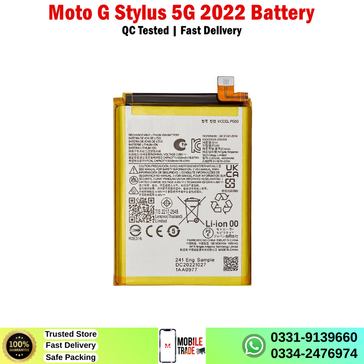 Want To Buy Motorola Moto G Stylus 5G 2022 Original Battery In Pakistan? You’ve Came To The Right Place! MobileTrade.Pk Offers High Quality Mobile Phones Batteries at Cheapest Price. Buy a top-notch quality & 100% Original Batteries In Affordable Prices. There is a Bunch of Reasons why our Valuable Customers Keep Coming Back!