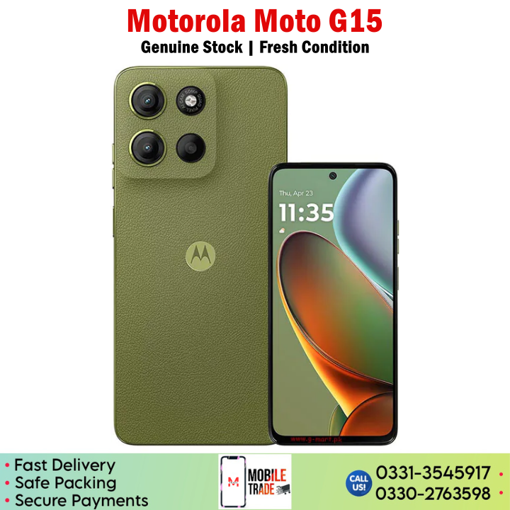Price of Motorola Moto G15 in Karachi, Lahore, Faisalabad, Multan, Rawalpindi, Islamabad, Peshawar, Hyderabad and other major cities of Pakistan is starting from Rs. 35,000/-
