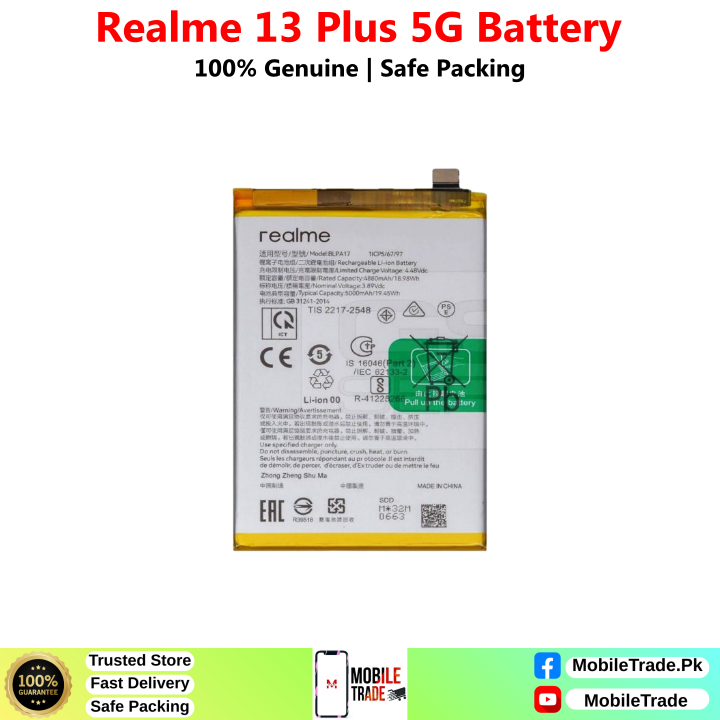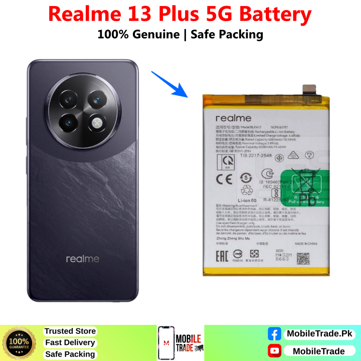 Want To Buy Realme 13 Plus 5G Original Battery In Pakistan? You’ve Came To The Right Place! MobileTrade.Pk Offers High Quality Mobile Phones Batteries at Cheapest Price. Buy a top-notch quality & 100% Original Batteries In Affordable Prices. There is a Bunch of Reasons why our Valuable Customers Keep Coming Back!