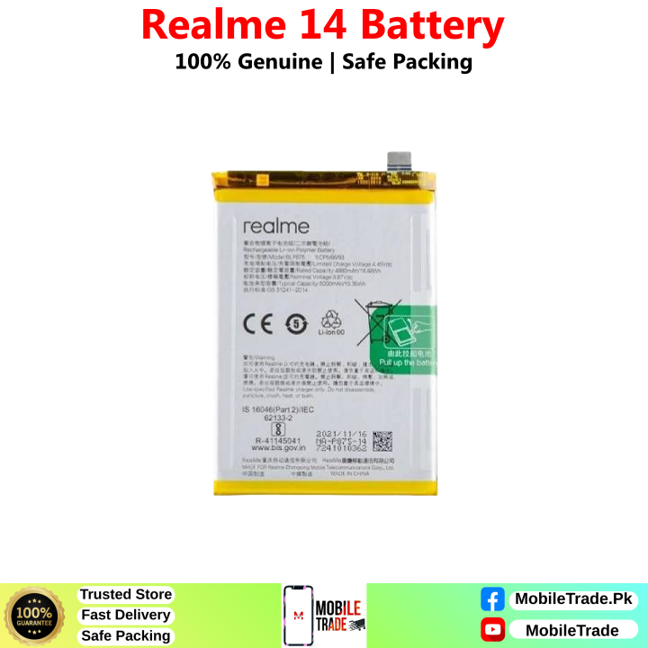 Want To Buy Realme 14 Original Battery In Pakistan? You’ve Came To The Right Place! MobileTrade.Pk Offers High Quality Mobile Phones Batteries at Cheapest Price. Buy a top-notch quality & 100% Original Batteries In Affordable Prices. There is a Bunch of Reasons why our Valuable Customers Keep Coming Back!