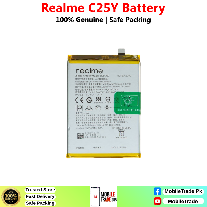Want To Buy Realme C25Y Original Battery In Pakistan? You’ve Came To The Right Place! MobileTrade.Pk Offers High Quality Mobile Phones Batteries at Cheapest Price. Buy a top-notch quality & 100% Original Batteries In Affordable Prices. There is a Bunch of Reasons why our Valuable Customers Keep Coming Back!