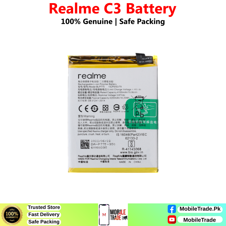 Want To Buy Realme C3 Original Battery In Pakistan? You’ve Came To The Right Place! MobileTrade.Pk Offers High Quality Mobile Phones Batteries at Cheapest Price. Buy a top-notch quality & 100% Original Batteries In Affordable Prices. There is a Bunch of Reasons why our Valuable Customers Keep Coming Back!