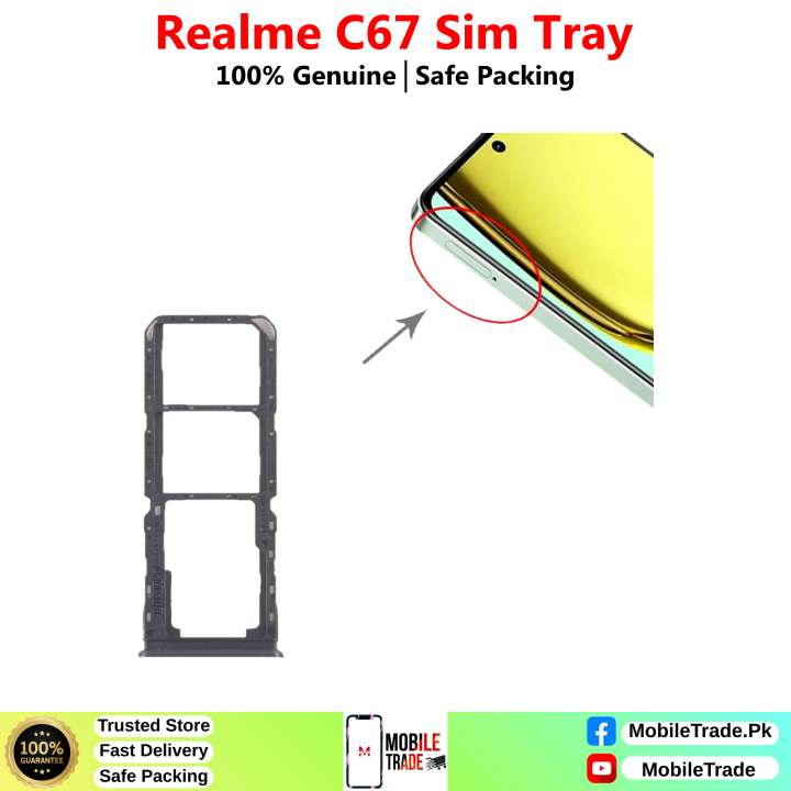 Explore unbeatable prices on Realme C67 Sim Tray Jacket at MobileTrade.Pk. Find the best deals on Top Quality Used Mobile Phones, Mobile Parts, Smart Watches, etc. Which Are Affordable, reliable, and ready to upgrade your Mobile Phone experience. Shop now for unbeatable value!