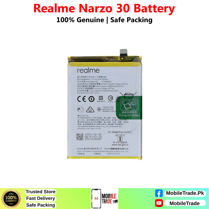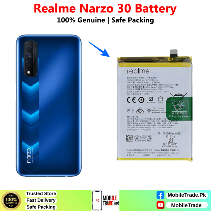 Want To Buy Realme Narzo 30 Original Battery In Pakistan? You’ve Came To The Right Place! MobileTrade.Pk Offers High Quality Mobile Phones Batteries at Cheapest Price. Buy a top-notch quality & 100% Original Batteries In Affordable Prices. There is a Bunch of Reasons why our Valuable Customers Keep Coming Back!