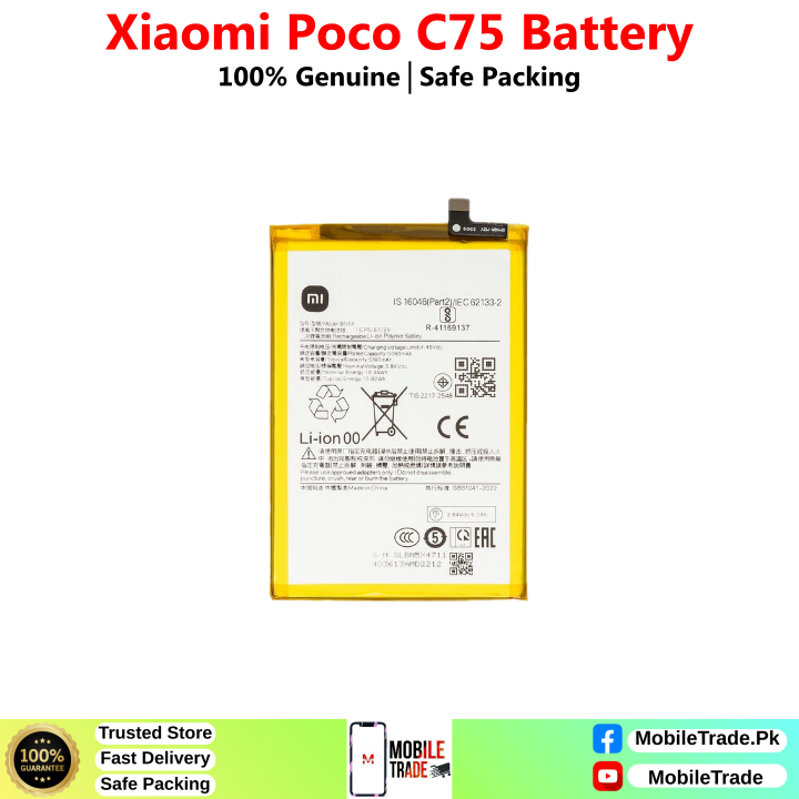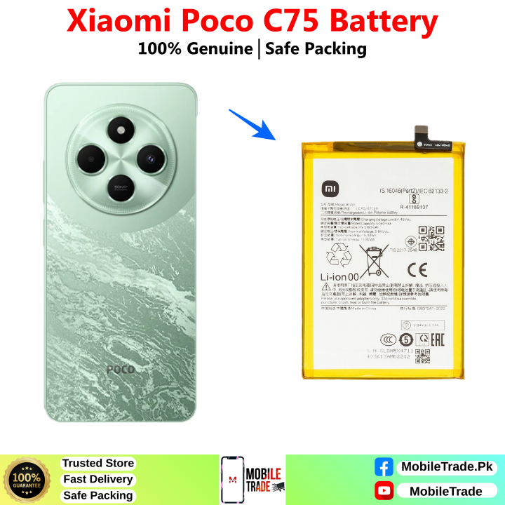Want To Buy Xiaomi Poco C75 Original Battery In Pakistan? You’ve Came To The Right Place! MobileTrade.Pk Offers High Quality Mobile Phones Batteries at Cheapest Price. Buy a top-notch quality & 100% Original Batteries In Affordable Prices. There is a Bunch of Reasons why our Valuable Customers Keep Coming Back!