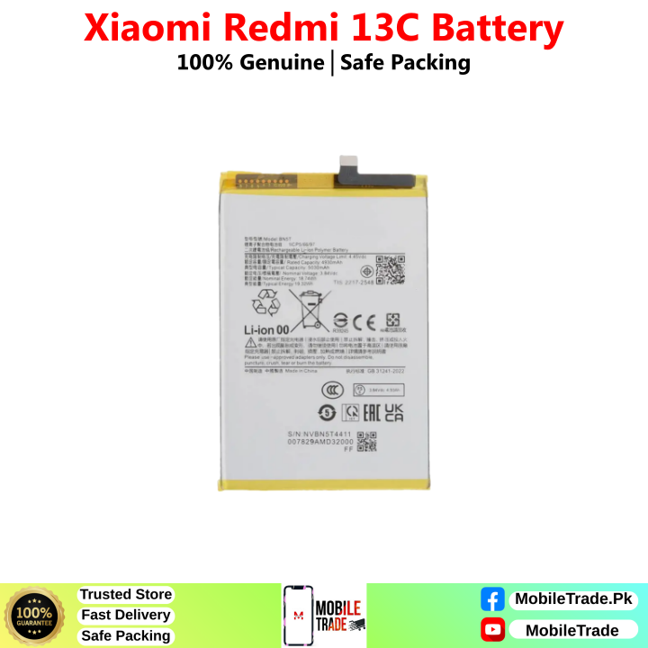 Want To Buy Xiaomi Redmi 13C Original Battery In Pakistan? You’ve Came To The Right Place! MobileTrade.Pk Offers High Quality Mobile Phones Batteries at Cheapest Price. Buy a top-notch quality & 100% Original Batteries In Affordable Prices. There is a Bunch of Reasons why our Valuable Customers Keep Coming Back!